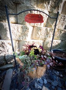 This was a quick one. Lia needed a sign for her goth garden. So, I went over to Woodc—the place with the $100 minimum purchase, got some bloodwood, and hit it with a hammer until it broke in the shape of a proper sign. They call it bloodwood because it’s red and it bleeds, and I figured I could get more of that bleeding with some wood burning by hand. We both liked the result.