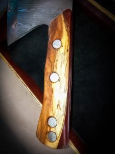 Damascus cleaver, spalted maple, eucalyptus